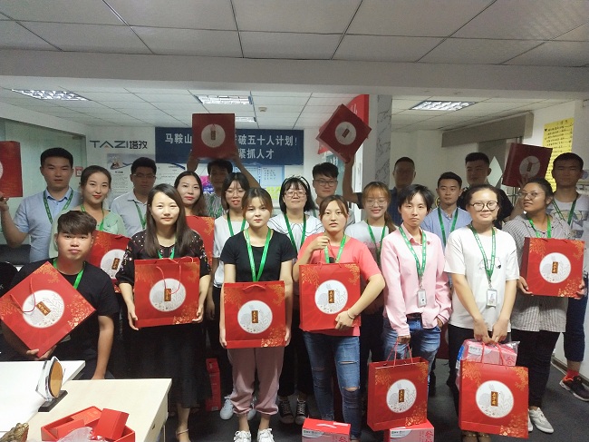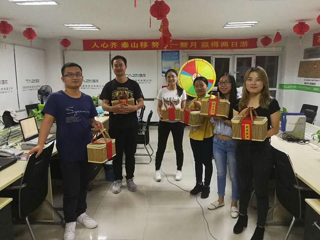 中秋佳節(jié)是個團圓的日子,安徽塔孜信息技術有限公司為所有員工準備了象征吉祥團圓的月餅禮品迎接這美好的節(jié)日。在這一張張笑臉中,充滿著快樂,洋溢著幸福。